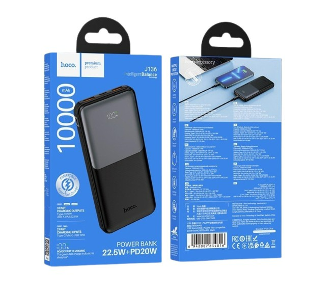 Внешний аккумулятор Powerbank HOCO J136 Sirui, 10000mAh черный